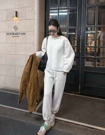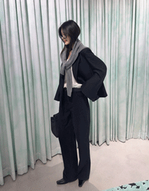 像模特一样与相同材质的上衣单品搭配的话会更加