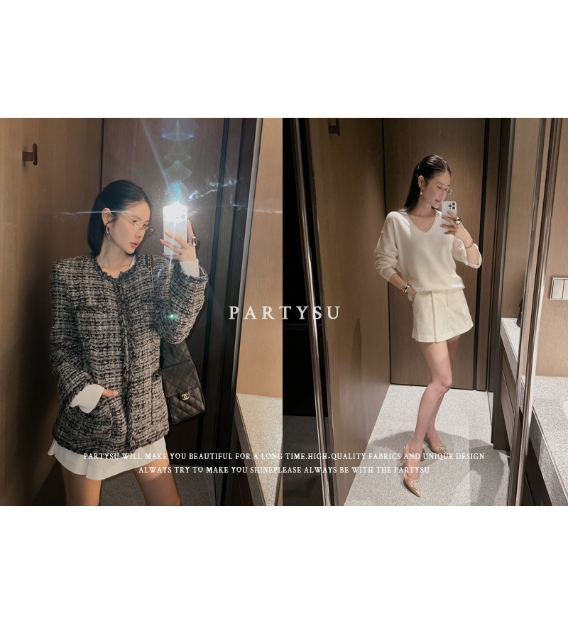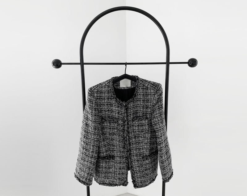 圆领粗花呢夹克
