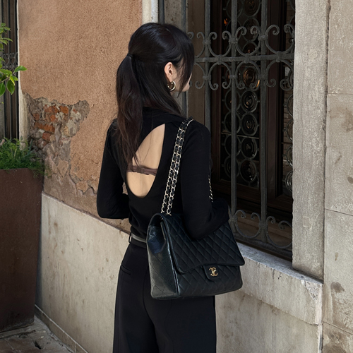 걸쳐지고 백 트임으로 스킨이 드러나 섹슈얼