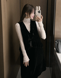 마야 벨벳 프릴 드레스