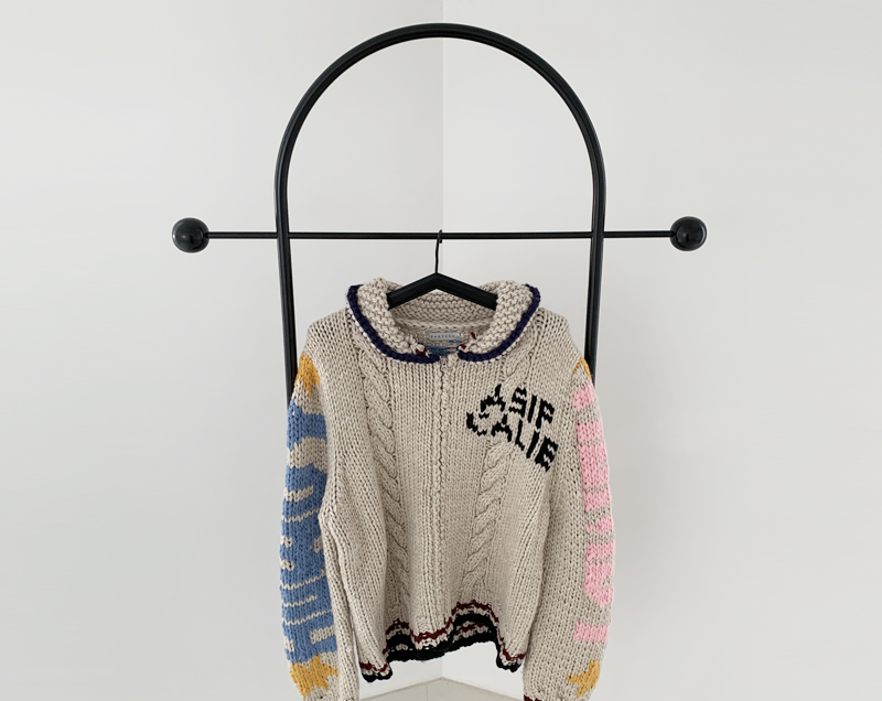 클래식한 무드의 핸드메이드 니트 집업을 소개해요.