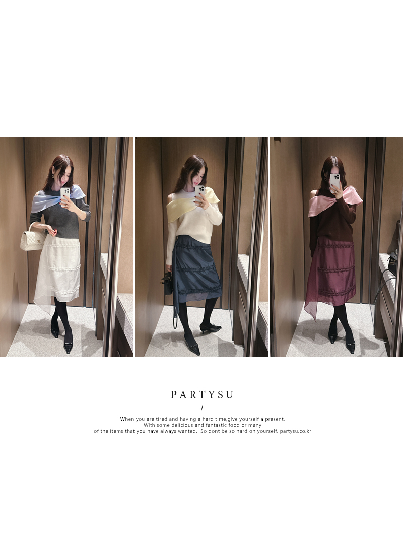 한쪽 어깨선이 드러나 여성스러운 감각을