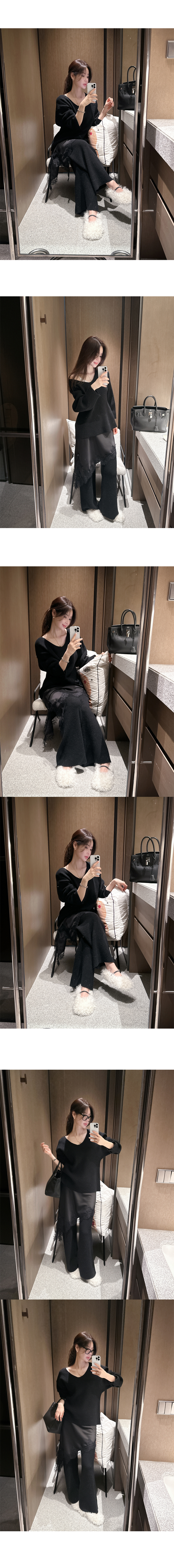 밑단 자수 레이스와 사선으로 떨어진