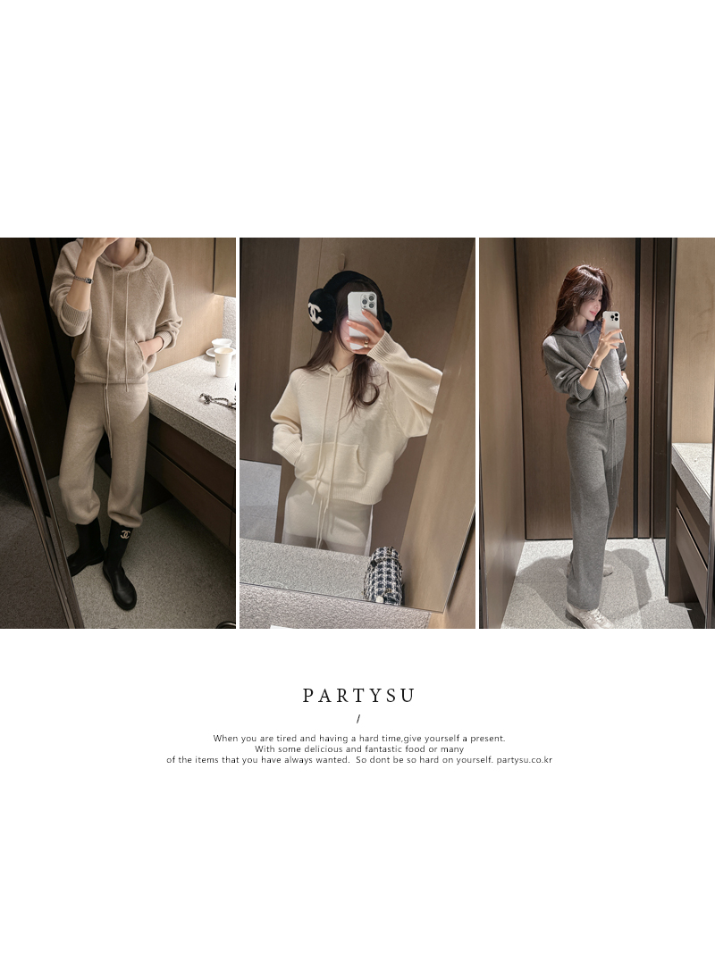 캐주얼한 무드의 후드 니트를 소개해요.