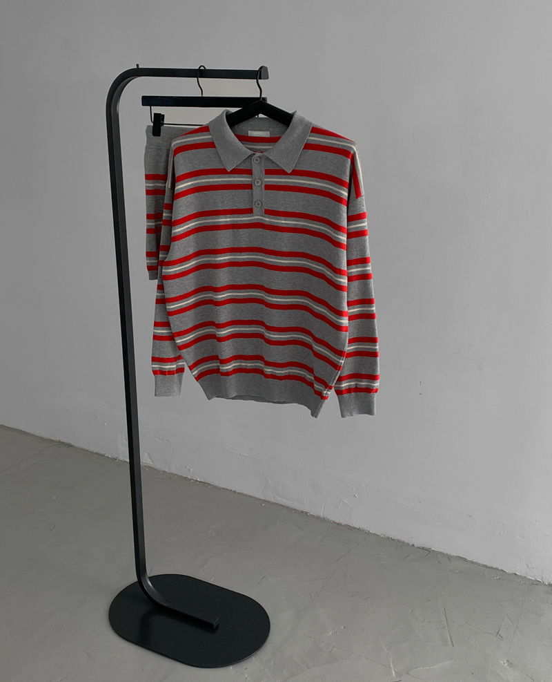 프렌치 스트라이프 카라 니트