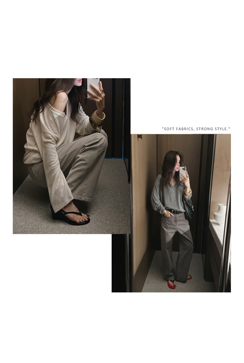 여유있는 브이넥 라인으로 부담 없이 착용 가능하며,