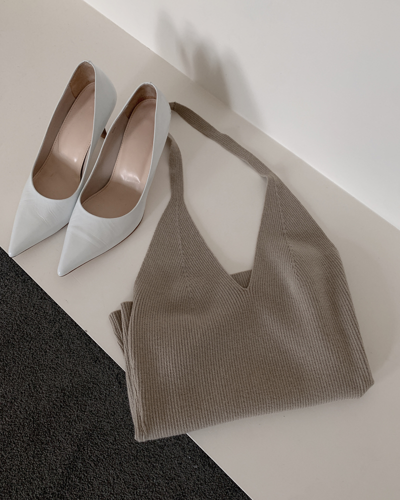 깊게 떨어지는 브이넥 홀터 디자인이 목선과