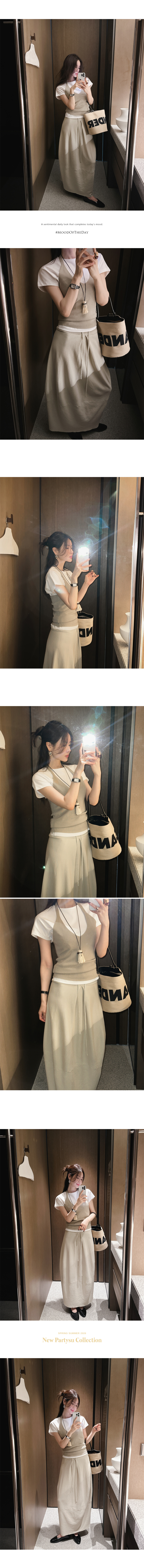 사진처럼 슬리브리스 탑과 매치하면 여성스럽고 세련된